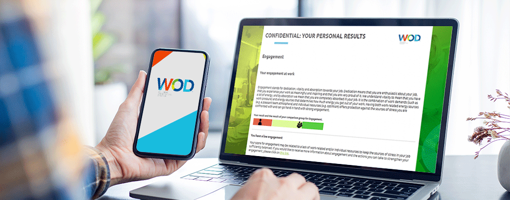 The WOD® tool maps psychosocial key indicators (engagement, organisational commitment, stress, burnout…), as well as relevant work characteristics and personal resources.